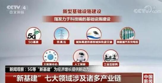 據(jù)央視新聞指出,“新基建”的范圍主要指發(fā)力于科技端的基礎(chǔ)設(shè)施建設(shè),包含5G基建、特高壓、城際高速鐵路和城際軌道交通、新能源汽車充電樁、大數(shù)據(jù)中心、人工智能、工業(yè)互聯(lián)網(wǎng)七大領(lǐng)域,涉及到通信、電力、交通、數(shù)字等多個社會民生重點(diǎn)行業(yè)。