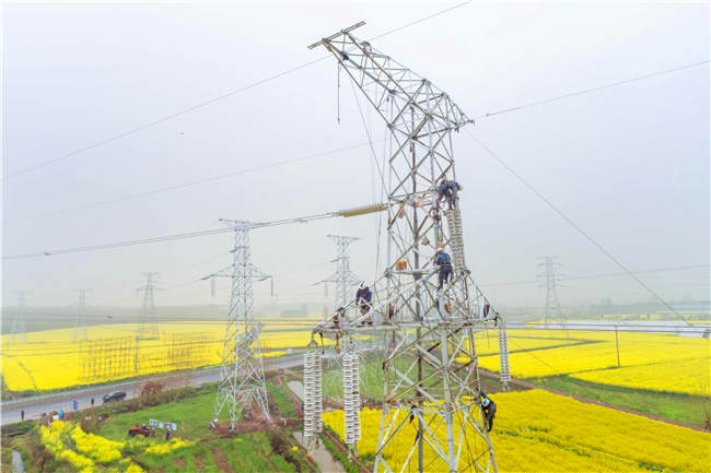 2025年9月23日下午3時,公安縣斗西110千伏線路工程現(xiàn)場。最后一相導(dǎo)線在41號鐵塔上穩(wěn)穩(wěn)掛接,對講機里傳來現(xiàn)場負責人鏗鏘有力的聲音:“導(dǎo)線牽引到位,全線貫通!”