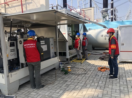 母線PT主要供輔助并網(wǎng)、繼電保護(hù)和監(jiān)測(cè)母線運(yùn)行狀態(tài)使用,特高壓淮南站在初期建設(shè)時(shí)設(shè)計(jì)安裝單相PT,今年開(kāi)展了1000千伏母線B、C相加裝PT工作。公司調(diào)配精干力量組成專項(xiàng)工作小組,提前勘察作業(yè)現(xiàn)場(chǎng),工地監(jiān)督人在現(xiàn)場(chǎng)再三強(qiáng)調(diào):“作業(yè)現(xiàn)場(chǎng)有真空機(jī)、空氣干燥機(jī)、200噸吊車、25噸吊車和8噸吊車等多臺(tái)大型機(jī)具,相鄰間隔帶電運(yùn)行,一定要提前規(guī)劃好車輛作業(yè)路線和機(jī)具、物料擺放位置。”由于工期緊張,每天現(xiàn)場(chǎng)作業(yè)時(shí)間長(zhǎng)達(dá)12個(gè)小時(shí),公司在全力做好疫情防控工作的同時(shí),采用“工地監(jiān)督+到崗到位+全時(shí)段視頻稽查+不定期檢查”四合一的方式扎實(shí)開(kāi)展現(xiàn)場(chǎng)安全管控工作,此次工程結(jié)束將有效降低特高壓淮南站GIS在系統(tǒng)調(diào)試和運(yùn)行中空充主母線時(shí)的放電故障率。