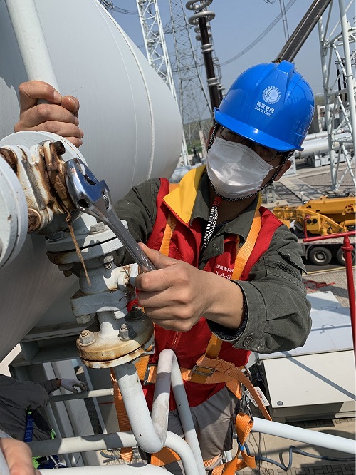 在對(duì)特高壓淮南站主變高壓端子接線柱及端部法蘭進(jìn)行排查時(shí),發(fā)現(xiàn)接線柱有偏移且端部法蘭不平整,作為變電站的“心臟”,必須確保主變的健康水平,4月3日至5月8日,國(guó)網(wǎng)安徽檢修公司圓滿完成特高壓淮南站內(nèi)兩臺(tái)主變的“心臟手術(shù)”,此次開(kāi)展1000千伏主變高壓套管大型檢修工作是省內(nèi)首次,國(guó)網(wǎng)安徽檢修公司提前編制檢修方案和安全措施,組織各單位技術(shù)骨干協(xié)同作戰(zhàn),細(xì)摳每一個(gè)作業(yè)環(huán)節(jié),從引線拆除、主變排油、套管端子更換,到抽真空、真空注油、修后試驗(yàn),手術(shù)的每個(gè)環(huán)節(jié)都一絲不茍、有條不紊。“今天晚上需要進(jìn)行關(guān)鍵的抽真空工作,我在現(xiàn)場(chǎng)通宵看守,不然我不放心。”每到關(guān)鍵環(huán)節(jié),工作負(fù)責(zé)人甚至需要通宵值守。歷經(jīng)36個(gè)日夜的奮戰(zhàn),終于完成“心臟手術(shù)”,確保主變以最佳狀態(tài)重新投入到電網(wǎng)運(yùn)行中。