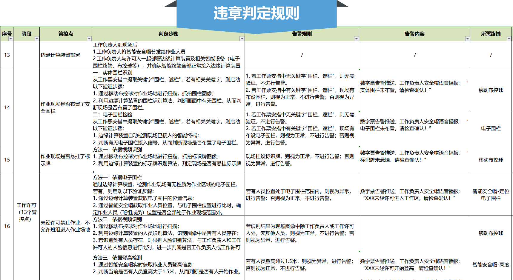 數(shù)字化安全管控判定規(guī)則是業(yè)務與科技融合的靈魂。在國網(wǎng)安監(jiān)部和國網(wǎng)浙江電力公司的指導下,國網(wǎng)信通產(chǎn)業(yè)集團項目組深入輸、變、配一線班組調(diào)研,圍繞“四個管住”,全面梳理典型違章案例與安規(guī)標準內(nèi)涵,結合數(shù)字化工作票,設計形成《數(shù)字化安全管控違章判定規(guī)則》和118項風險管控點,以技術手段彌補傳統(tǒng)安全管控存在的不足,為數(shù)字化安全管控的設計研發(fā)奠定業(yè)務基礎。