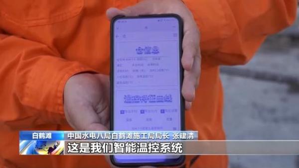 中國水電八局白鶴灘施工局局長 張建清:這是我們智能溫控系統(tǒng),及時把倉面的溫度和冷卻水管的溫度反映到我們后臺平臺上以后,通過預(yù)先設(shè)定的溫控策略,然后對通水溫度以及通水的流量進行調(diào)整,確?;炷羶?nèi)部最高溫度和降溫速度完全按設(shè)定目標(biāo)進行,做到分毫不差。