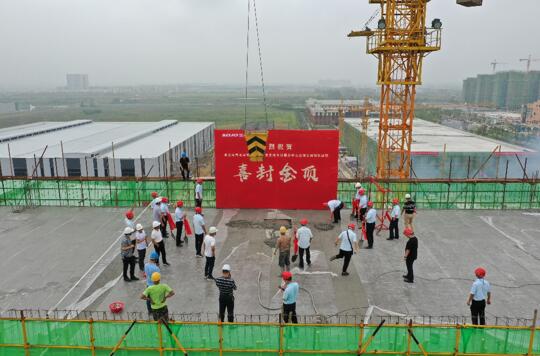 為了確保施工進(jìn)度,總包方充分利用空閑時(shí)間,全員加班加點(diǎn),在確保質(zhì)量的同時(shí)與時(shí)間賽跑,最終如期完成生活服務(wù)中心及綜合樓中--九層辦公樓的土建工作,并于7月9日9時(shí)9分舉行了封頂儀式。