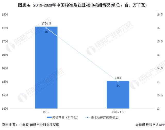 根據(jù)中電聯(lián)的數(shù)據(jù)顯示,截至2019年底,我國核準(zhǔn)及在建核電機(jī)組16臺,裝機(jī)容量1754.5萬千瓦,位居世界第一。而截止到2020年9月底,在建核電機(jī)組14臺,總裝機(jī)容量1553萬千瓦。